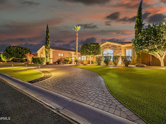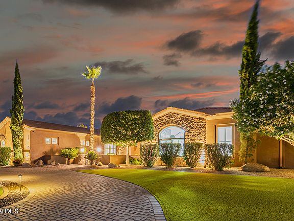 Nestled in the upscale Montana Dorada community, this exquisite single-level, 5 bedroom, 4 bath home offers luxury, comfort, and exceptional design at every turn! This property includes attached casita/ADU (564 sq ft which is included in the 3766 sq ft overall livable area), 1200 sq ft RV garage, 3-car side garage w/built-ins, and circular paver driveway. Stunning stone-accented facade and lush natural turf. Inside: formal living/dining, soaring ceilings, premium flooring, plantation shutters, modern fixtures, and custom palette. Cozy family room with sleek fireplace. Gourmet kitchen features high-end appliances, prep island, breakfast bar, and nook. Resort-style backyard boasts cabana, full BBQ, saltwater pool with grotto and slide. See attached docs! End your busy day in the primary suite, showcasing direct outdoor access, a walk-in closet, and a lavish ensuite w/dual sinks plus a makeup table. Guest quarters also boast their very own kitchenette! Lastly, the expansive backyard includes a covered patio, extended seating area, a lovely gazebo w/a built-in BBQ, and a sparkling blue pool w/a rock waterfall! The home of your dreams is here, hurry and act now!