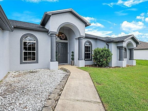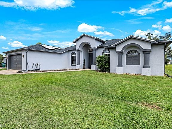 Welcome to your new home in highly desirable Northeast Cape Coral! This spacious 3-bedroom + den, 2-bathroom pool home offers the perfect blend of comfort and Florida lifestyle living. With over 2,000 sq ft., this open floor plan is ideal for entertaining, while the private screened-in pool area provides a relaxing retreat for family and friends. Enter the house through elegant double entrance doors, into the large and appealing living area with sliding doors to the lanai and pool area. With a versatile den that can serve as a home office, guest space, or playroom, this property adapts to your needs. The kitchen features large countertops for durability, pantry, stainless steel appliances and large breakfast nook as well as a family size dining room. The primary suite has two walk-in closets, in master bathroom the focal point is a gorgeous and large tub, with a large walk around shower behind it. It also has 2 separate vanities/sinks and a private toilet closet. Outside you will find your own tropical oasis and will enjoy the best sunrises that Florida has to offer. This incredible home also offers a brand-new roof, solar panels that greatly reduce your monthly expenses, new well pump, new pool pump and new cartridge for filter and an UV filter for the AC. The house has a security ADT alarm system and the front door with a code panel and hurricane shutters for safety. No Flood Insurance Required!!!! Do not miss this opportunity on this amazing home, starting the next chapter in your life.