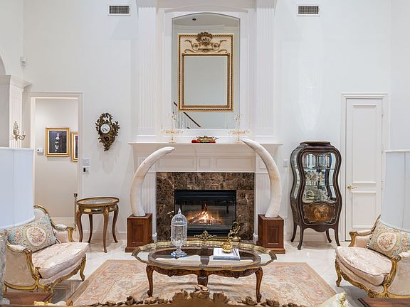 Crown moldingsArched windowsCustom built insPolished tile floorsTwo fireplacesStone countersSweeping staircase