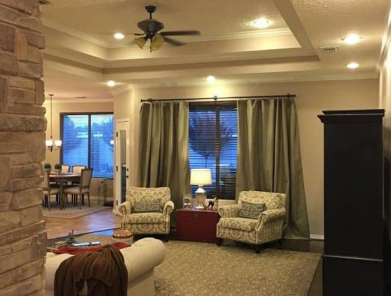 Beautiful 2,250 sq. Ft. home built in 2009 with 3 bedrooms 2.5 baths. The family room has wood floors, tray ceilings, crown molding and caned lighting. The formal dining room has wood floors, tray ceilings, crown molding and caned lighting. The kitchen comes with custom cabinets, breakfast bar, breakfast area attached. Large master bedroom with tray ceilings, crown molding and caned lighting. Master bath has jet tub, double sinks, separate shower and large walk in closet with custom shelves and racks. House is a split floor plan, with two spacious spare bedrooms that share Jack-&-Jill bath, nice size closets. The home further has a spacious laundry room with storage, 2 car garage, beautifully landscaped front and back yards, with mature trees. Please click on the Virtual Tour for more photos and an important message.