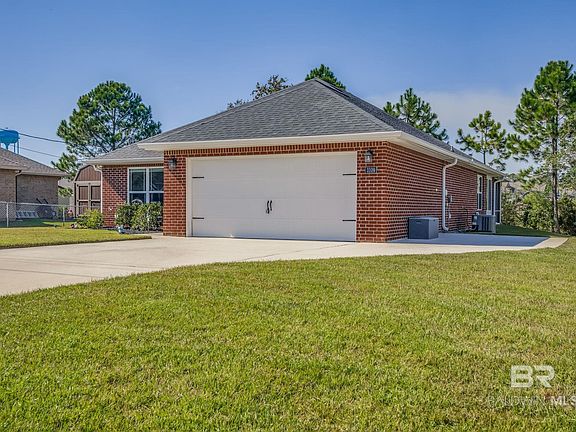 Welcome to a beautiful Flynn Built coastal brick home, constructed in 2020 to Gold Fortified standards. Offering 1,675 sq ft of thoughtfully designed living space, this home has a relaxed coastal style with quality in a peaceful, natural setting just minutes from the water. Step inside to the inviting open-concept layout where vaulted ceilings create a spacious feel that connects the living, dining, and kitchen areas. The kitchen features granite countertops, a pantry, and ample workspace—for entertaining. Natural light fills the home, highlighting the comfort throughout. This 3-bedroom, 2-bath home includes a 13x9 sunroom and a separate 13x9 screened porch, offering flex space for morning coffee, reading, or a home office. The primary bedroom provides a quiet retreat with views of the serene backyard and a private ensuite bathroom. The outdoor area is a highlight, with a tranquil seasonal water view and featuring a patio with space for a hot tub or outdoor kitchen. The yard is kept lush with a full irrigation system and offers plenty of space for gardening and space for boat or RV parking to enjoy all that coastal Alabama has to offer. Additional features include luxury waterproof vinyl flooring (2024), an infrared air ionization system, a wired security system, hurricane covers, whole house generator switch, a termite plan. Every detail has been considered to ensure comfort, durability, and peace of mind. Located in the beachside, pet-friendly community of Spanish Cove on the AL/FL line, this home is just 5 minutes from the Lillian boat launch and 15 minutes from Gulf beaches. Enjoy amenities like a private beach, 500-ft pier, two clubhouses, year-round pool, sports courts, fitness center, playground, trails, and golf cart access. The community offers social events, games, classes clubs, and group travel. Whether you're looking for a full-time residence or a peaceful coresidence or a peaceful coastal getaway, this is a great place to call home. This is a must see.