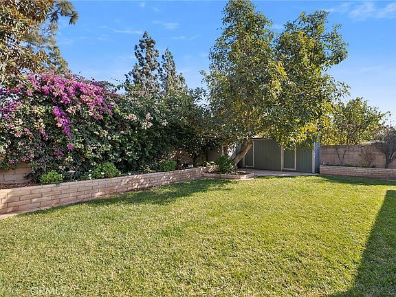 Welcome to this charming South Coast Metro home, featuring a custom wide driveway, landscape lighting, and elegant wrought iron railings and gates. These lead to a private front patio, with wrought iron side gates offering access to the backyard. Inside, you'll find double-pane windows, newer rear patio sliders, and two large skylights in the vaulted living room that flood the space with natural light. The living room also includes double-hung windows on either side of the gas fireplace. The remodeled guest bath boasts custom cabinetry, a granite countertop, and a luxurious soaking tub. It also features a quiet ceiling fan, as well as tiled floors and tub surround. The kitchen is a chef's dream, with custom cabinets, a large custom island, newer appliances, and a spacious garden window—perfect for growing an herb garden or displaying seasonal décor. The primary suite includes a large walk-in closet, and additional storage can be found in the converted pantry and hall closets. For added convenience, the indoor laundry room is equipped with both 240V electric and gas hookups. The home also offers forced air heating and air conditioning to ensure comfort year-round. Step outside into the serene backyard, where you'll find block walls on all sides, wired landscape lighting, and a soaker hose in the planters. A large avocado tree provides ample shade, ideal for enjoying homemade guacamole. The backyard also features a patio with a lattice cover, as well as a smaller patio under the avocado tree. A custom-built storage shed completes the space. Other notable features include automatic sprinklers in both the front and back yards, a newer insulated garage door with opener, a high-quality composite roof, and a hard-wired security system.