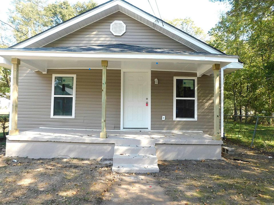 A brand new Interior with modern touches, colors, open floor plan, 3 bedrooms and 2 bathrooms. Master in back with own bathroom... Modern 1940's charm. New everything. The Master bath was added for more functionality and privacy.(2025) All flooring is new, HWT new, HVAC new and will be comleted on the 22nd. The home is all electric. Back steps will be completed prior to closing.House has good bones, wood subfloor, closed piers. Great Front porch to sit on and wave to some great neighbors. Little section of the street is all like family. Parking area on side of the house where concrete pad enters. Foundation/crawl space gaps to be filled in/repaired. Great for a first time buyer wanting a down town location or great investment property. Measuring is estimated, feel free to measure.