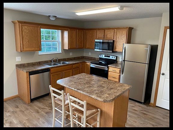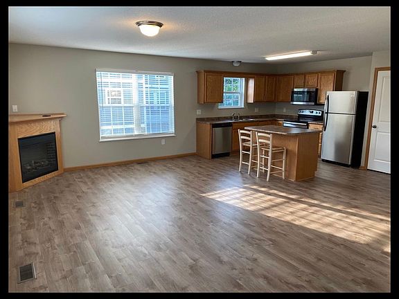 Recently renovated townhome for rent. Check out the square footage! This unit is 100 square ft larger than others in the complex and has an additional bathroom. The open kitchen/living room/dining area includes new stainless steel appliances and vinyl plank flooring. The master bedroom offers large walk-in closet and master bathroom. Both bedrooms feature dramatic vaulted ceilings. Keep your cars warm and snow free in the attached two car garage. Available December 1st. One year lease. Deposit is the same as one months rent. Cats and small dogs allowed with $50 pet rent.