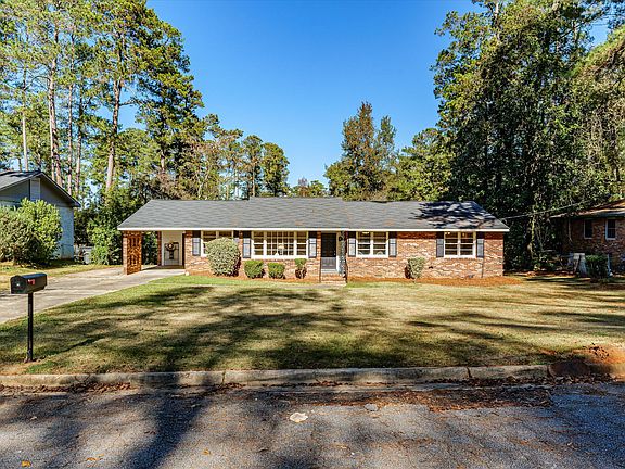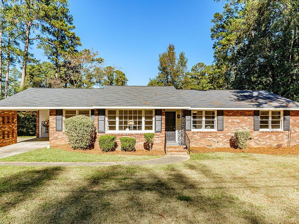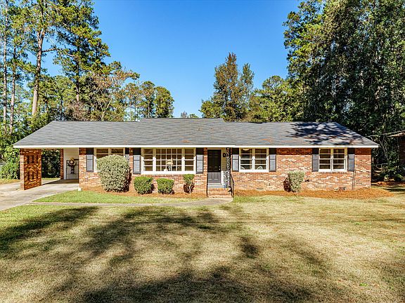 MASTERS RENTAL POTENTIAL. SELLER IS MOTIVATED. GREAT FLOOR PLAN FOR ENTERTAINING. This restored brick ranch is waiting for new owners. The Original hardwood floors were sanded and restored to original beauty. Light trumpets in the front rooms in the mornings and early afternoons that you will not want to leave. Unique chandelier in entry foyer with living room and dining room around the corner. Step into the kitchen with freshly painted wood cabinet doors, new dark gray Luxury vinyl plank, and inset can lights and black chandelier make this a perfect and comfortable heart of home. Black double doors with louvers. Large eating area or sitting area in kitchen. New dishwasher, double oven, sink, and faucet. Down the hall are 3 guest rooms with one full remodeled full bath. Master bedroom has lots of room for furniture and also a remodeled full bath (large for this age house). Double doors in kitchen open up to large covered patio and brick patio to side for full parties. There is enough room for a pool. Carport is enclosed and large utility room with washer and dryer hookups as well as tons of storage for pantry items, cleaning and laundry supplies. Wow, this home will warm your heart as sun pours in. Please come and see all that this house has to offer.