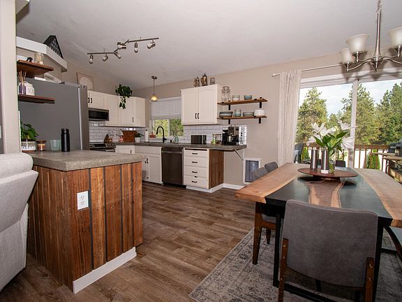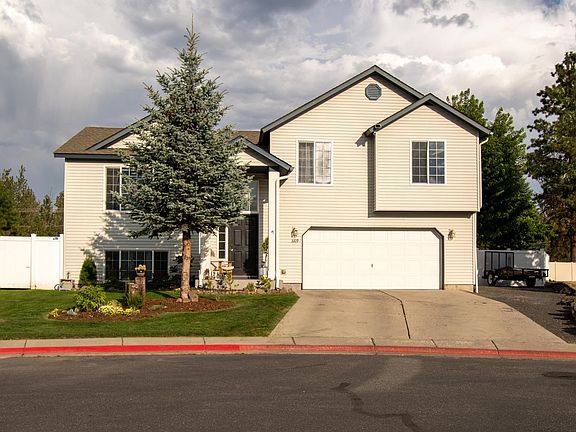 Discover this beautifully upgraded 4-bedroom, 3-bath single-family home on a quiet cul-de-sac. With 2,165 sq. ft. of living space, this 2004-built home perfectly combines modern updates with everyday comfort. Inside, you’ll find new luxury vinyl plank flooring, a fully updated kitchen featuring new counter tops, a spacious stainless steel sink, and new appliances including a refrigerator, stove/oven, microwave, & dishwasher. The master bathroom has been remodeled, and the home also features a new hot water heater & front door. The entire downstairs has been transformed into a master suite, with the second living room converted into a spacious bedroom and the original downstairs bedroom re-imagined as an office/closet—offering the perfect private retreat. Step outside to enjoy a new cedar deck and patio, overlooking a huge vegetable garden with automatic sprinklers. A shed provides extra storage, while side parking offers plenty of space for an RV or boat. 15 minutes from Fairchild AFB.