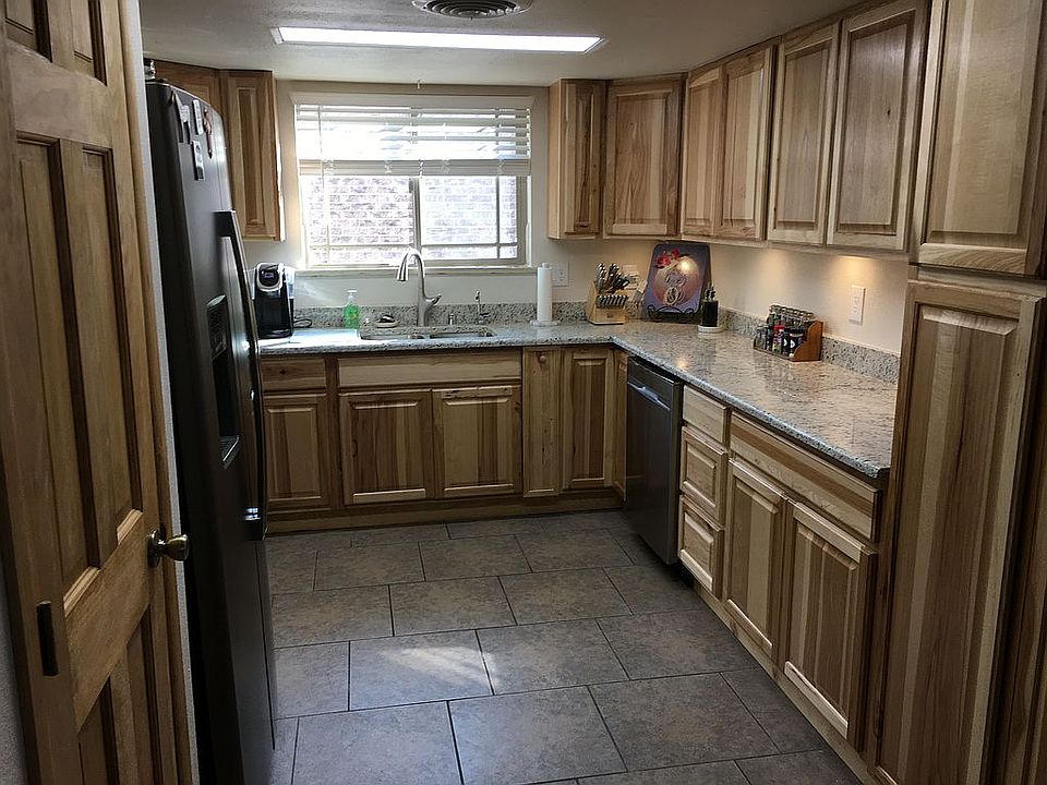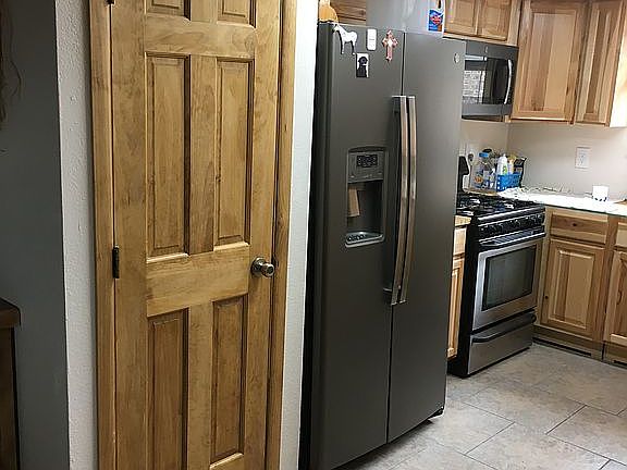 Recently remolded home with a very unique floor plan that features a very spacious U shaped kitchen and adjoining spacious living room. Tile flooring in all but the bedrooms. New 6-panel doors and trim through-out. The heart of this home is a large living room with a center fireplace and high beamed ceilings that can hold large furnishings. The covered patio looks out over a north facing yard that has no neighbors directly behind. This gives a feeling of privacy and lets the mountains be the focal point of your back yard. see this one last