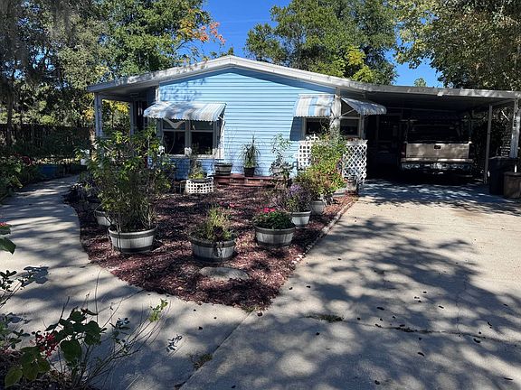 Come See This Beautiful Home in One of Florida's Premier 55+ Communities! As you walk up the long, welcoming walkway to the front entrance, you'll pass through beautifully landscaped gardens-complete with the community's official Butterfly Garden, a peaceful fountain, and plenty of seating to relax and enjoy the scenery. Step inside and you'll be greeted by a spacious living room, large enough for all your furniture and a big-screen TV. The open layout flows nicely into the dining area, perfect for entertaining guests, and featuring built-in bookcase-style cabinets on each side of a Murphy bed-ideal for overnight visitors. The kitchen is a highlight of this home, boasting newer cabinets with glass-front uppers to showcase your special pieces, and lower cabinets with slide-out shelving for easy access. You'll find ample counter space, a double sink, built-in oven, modern glass cooktop, and a breakfast nook overlooking the Butterfly Garden-perfect for morning coffee. Down the hall, the guest bathroom offers a tub and shower combo, while the guest bedroom is generously sized with a step-in closet. It's currently used as an office but easily accommodates a queen bed, dresser, TV, and sitting area. The primary bedroom suite is spacious and comfortable, with room for a king bed, dresser, large TV, and a cozy sitting area. Enjoy the double walk-in closet and a large private bathroom featuring updated cabinets, a step-in shower, and a newer walk-in tub. The washer and dryer are currently located here but can easily be moved to the interior laundry area if preferred. Additional features include a large Florida room-currently set up as a workshop but easily converted back into a relaxing sitting space-as well as a storage room. The home offers newer windows, storm shutters, roof, air conditioner, lighting, and ceiling fans throughout. Flooring includes parquet-style wood in the living, dining, and bedroom areas, with laminate tile in the kitchen and baths. This wonderful home is just a short walk to the clubhouse, where you'll find two pools, golf, tennis, shuffleboard, and countless activities. Conveniently located near shopping, restaurants, beaches, and major roadways leading to all of Central Florida's top attractions. An unbelievable value-come live the Florida lifestyle you've been dreaming of!