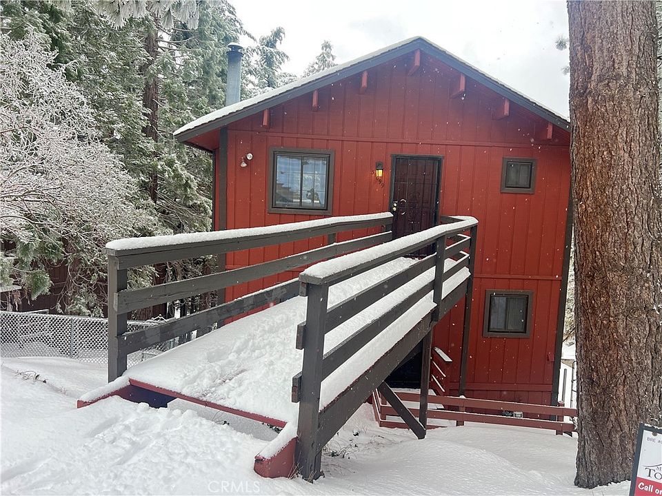 Charming Titan style house with city lights view! Drive up to find level parking and bridge to a level entryway. Walk into this cozy mountain retreat to an open living space and kitchen, 3/4-bathroom, two sliding glass doors to a deck overlooking a view of the trees and city below. Downstairs you will find 2 bedrooms, full bathroom, laundry room and access to the backyard with a build up space and flat area perfect for a future firepit or play area for your kids or dogs! Don't miss this opportunity to live full time or part time in the beautiful San Bernardino Mountain community of Running Springs!