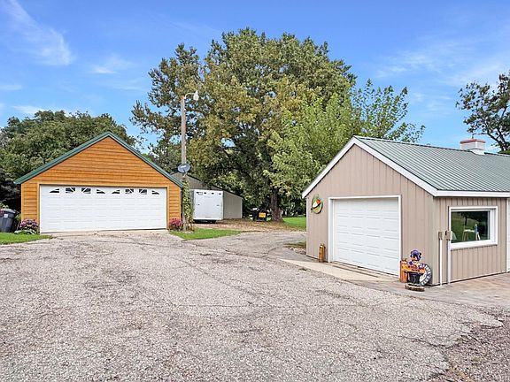 Enjoy peaceful country living on 4.46 acres with mature trees, tasteful landscaping, and low maintenance finishes. This well-maintained home is set up as 2 bedrooms now, with an easy floorplan to finish additional bedrooms! Exterior features LP SmartSide, steel roof, stone accents, and a welcoming 12×16 covered rear porch—perfect for morning coffee or entertaining. A detached 2-stall garage, an additional single-stall garage with finished “man cave,” and a metal-sided storage shed provide abundant space for vehicles, hobbies, and tools. Two LP tanks are connected to the backup generator, offering year-round peace of mind. All the charm of a country setting, but the amenities of town with city water and city sewer. Come take a look!