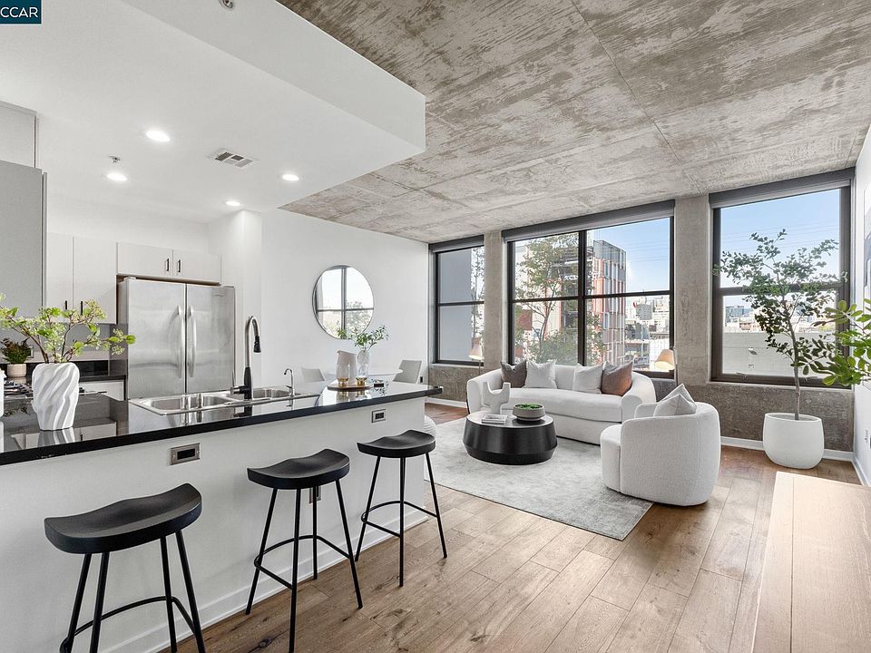 Located in the heart of Oakland’s vibrant Jack London Square, 311 2nd Street #405 offers the ultimate blend of modern loft living and unbeatable lifestyle convenience. This stylish 1-bedroom, 1-bath luxury condominium at The Bond features soaring ceilings, abundant natural light, and an open industrial-inspired floor plan accented by designer finishes, fresh updates, and a neutral modern palette. The kitchen boasts stainless steel appliances, quartz countertops, and freshly painted cabinets, while the bathroom has been recently refreshed with a new vanity, counters, flooring, and an updated shower. Enjoy the ease of in-unit laundry, central heating/cooling, and a secured deeded parking space, along with upscale community amenities including 24-hour concierge, fitness center, business lounge, landscaped courtyard, BBQ areas, and even a dog park. Step outside and experience the energy of Jack London Square, just moments from breweries, wine bars, waterfront dining, and weekly farmer’s markets, with quick access to BART, Amtrak, the Oakland-Alameda Ferry, and major freeways for seamless commuting. Offering a fun, dynamic vibe with modern comfort, this loft is the perfect choice for anyone seeking a chic urban lifestyle in one of Oakland’s most exciting neighborhoods.