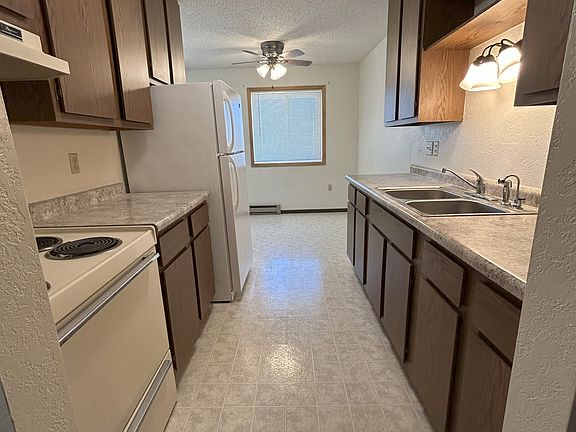 Spacious 2-bedroom Apartment in a 16-Unit Building. Updated flooring, appliances, counter tops, lighting and bathrooms. One unit has a walk-in bathtub! Large Anderson windows with blinds. Ample closet space for storage. Spacious outside lawn area to use for your enjoyment. Hot/cold/soft water, snow removal, lawn maintenance and garbage all included in rent. Residents are responsible for their own electric. Coin operated laundry on-site. No pets. Off-street parking. Lease required. No smoking. The downtown and New Public School are all conveniently within walking distance.