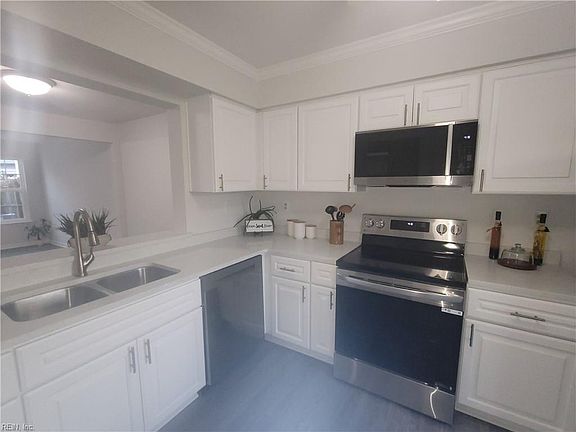 Discover modern comfort & style in this beautifully renovated 3-bdrm, 2.5-bath townhouse. Inviting open layout features brand-new LVP flooring throughout the main level & a completely updated kitchen showcasing sleek stainless steel appliances, contemporary cabinetry, & stunning countertops, great for cooking, entertaining, & everyday living. Abundant natural light streams through all-new windows, new lighting, & step outside through the brand-new French door that opens to a private backyard complete with a cozy patio, a great spot for relaxing or hosting gatherings. Upstairs, plush new carpeting, new lighting, & a luxurious brand-new ensuite bathroom w/a spacious walk-in shower, a new vanity/sink, & new flooring, creating a serene private retreat. The additional full bathroom has also been remodeled & includes a new vanity/sink & flooring, offering convenience and comfort. Thoughtful upgrades throughout & a fresh, modern aesthetic Centrally located in the heart of Chesapeake.