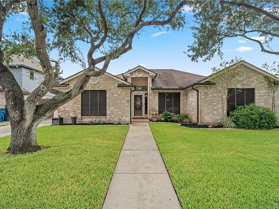 Discover this stunning 3-bedroom, 2-bath residence in the sought-after Northshore Country Club of Portland, TX. Recently transformed with over $150,000 in thoughtful renovations, this home offers modern luxury, functional upgrades, and unique features you won’t find anywhere else. Inside, the home boasts a converted garage into a spacious second living area, complete with a secret hidden room for added versatility. Both bathrooms have been fully gutted and remodeled to the studs, featuring new vanities, showers, fixtures, flooring, and lighting. The primary suite showcases a walk-in shower with glass wall, freestanding soaking tub, and elegant finishes. The kitchen has been completely reimagined with reconfigured counters, a custom island, painted solid oak cabinets, quartz countertops, a tile backsplash, recent KitchenAid appliances, updated plumbing, and modern lighting. Additional updates include: Fresh interior paint throughout, RECENT flooring with baseboards across the entire home, Updated interior doors, trim, ceiling fans, and lighting, Three-stage whole-home water filtration system, recent water heater, Gutters installed around the home, Decked attic space for storage above the new living area