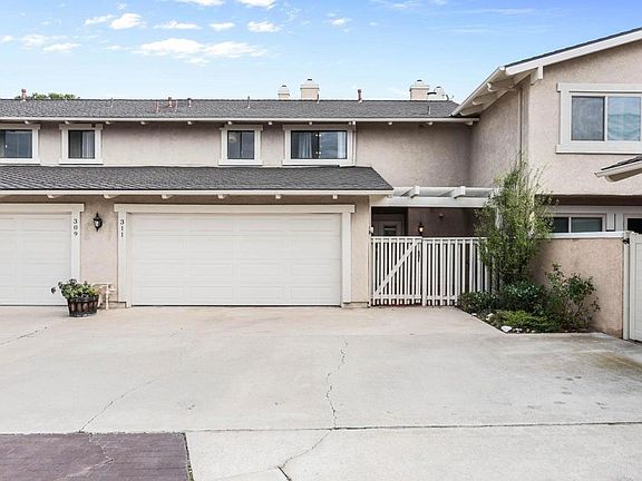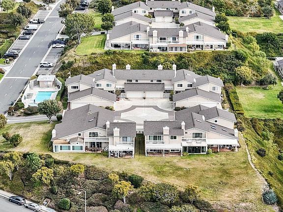 San Clemente Coastal Lifestyle is just a hop skip and a jump, from this incredibly located townhome in the Ocean View community of Presidential Heights. San Clemente Pier, Beaches, Shops, Restaurants, Golfing & Hiking Trails, and easy access to transportation with the train station and freeway access all located within 2 miles. This 3 bed, 2.5 bath two-story townhome has been beautifully renovated in a clean bright modern style. From the moment you walk through the courtyard entry and through the front door, you will notice the bright and airy open floor plan with new French oak color LVP flooring throughout the home, a chic modern inspired kitchen with new white cabinets with gold accents, quartz countertops with custom tile backsplash and stainless steel appliances. Upstairs you will find two secondary bedrooms both with ceiling fans & one with a peek-a-boo ocean view. Additionally, the secondary bath that has been updated to include white carrera marble floors, new vanity with quartz countertop and newly tiled shower with white tile in herringbone pattern. The master suite offers vaulted ceilings, ceiling fan, a walk out patio space, and an incredibly updated master bath with two tone tile charcoal & white walk in shower, dual vanity with dark toned fixtures and pendant lighting. This townhome also offers a back patio and privacy from the slope behind and a 2 car garage. You'll also find a community pool, and an abundance of ocean view greenbelts to enjoy sunsets and the cool ocean breezes.