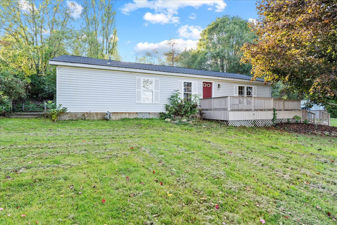 Modern fixturesFirst-floor laundrySpacious wrap-around deckOpen-concept layoutWalk-in closetPrimary suiteUpdated countertops