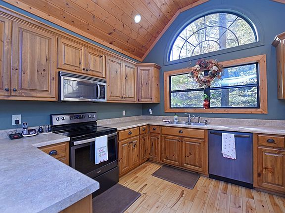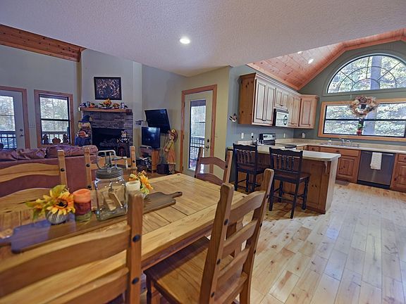 Mountain paradise! 1. 7 acres of private, peaceful quiet with small creek. Feel right at home in desirable Laurel Brooke, a friendly gated community, Perfect getaway for entertaining or enjoy full time living in this 4 Bed/3.5 bath home. Windows! Windows to enjoy mountain living, watch the deer & just breath! Nice mix of wood, stone & drywall. Cozy living with cathedral ceilings, gas Stone fireplace with wrap around covered deck. Hardwood floors throughout the house. Gorgeous chef's over-sized kitchen with granite & breakfast bar. Open concept to dining/ living area & nicely decorated. Spacious primary bedroom suite opens to covered deck, large bath with double vanities, jetted tub & shower. Upper level has two bedsrooms, large closets & bath. Watch the deer & enjoy the outdoor fire pit area next to a small bubbling creek. Lower level includes office space, storage, 2nd living area & bedroom with full bath. Walk out terrace level to covered patio, Detached shed can be used as workshop. Whole House Generator & move in ready to make this your forever home. Peaceful surroundings, quiet neighborhood & near Lake Nottely, a marina & public boat ramp. A convenient 15 minutes from town.