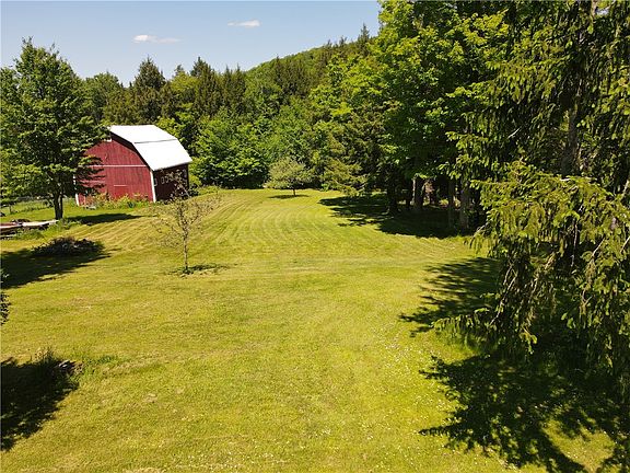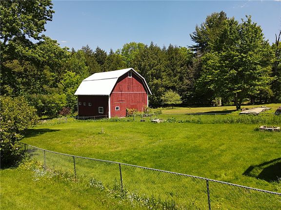 Here's your Farmette you've been looking for! Hard to find a listing like this one with a ranch style home, full walk out basement, garage, barn and pond. This ranch home has two bedrooms with a full bathroom and an additional half bath in the full basement. Enter the home through the enclosed porch and stroll into the kitchen/dining room. The kitchen counter tops are quartz. All appliances included in the sale. In the living room, enjoy the corner gas insert fireplace or wander out onto the rear opened deck. The deck leads down to the rear partially fenced in yard. At one time there was a pool in the rear and the connections are still in place. The laundry area is in the full basement. There are two exterior doors from the basement, there is so much potential to finish the basement off. Surrounding the front of the barn are grape vines. The barn has stalls and an upper hay loft. Trails leading down to the pond. The pond does need to be cleaned out. The water source is spring fed and shared with other connecting neighbors. The shut off valve is on this property. There is a heated detached two car garage. Call today to set up an appointment to see this property.
