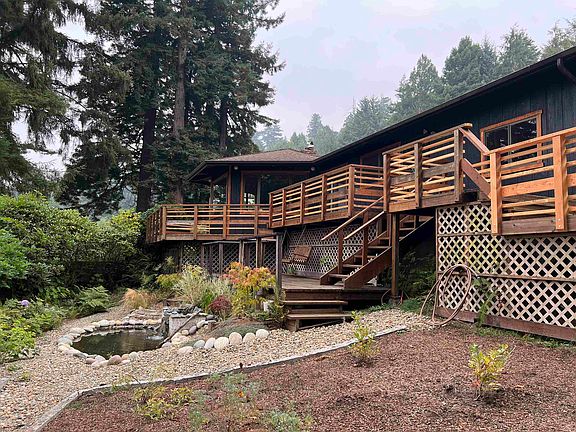 Panoramic Oceanviews of our coastline including Lake Earl you can watch all day long and see the sunsets from this 3 bedroom 2 bath home situated with the Redwood National Park as your border on the east side. Bathrooms have been remodeled with tile counters & floors, master bath with walk in shower, livingroom with great ocean views & fireplace with wood insert, central heat & air. Beautiful landscaped yard with two level deck, fish pond & enclosed garden area, great areas to sit & enjoy the ocean views. Complete new exterior paint, new wood features in the livingroom & new paint