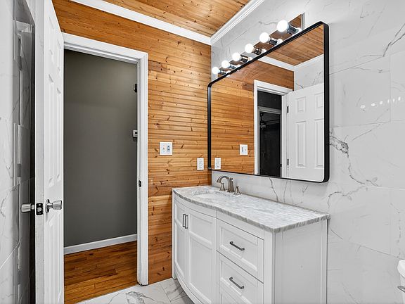 Above-ground poolSpacious back deckCozy covered front porchStylish new tileUpdated bathroomFreshly painted cabinetsRenovated kitchen