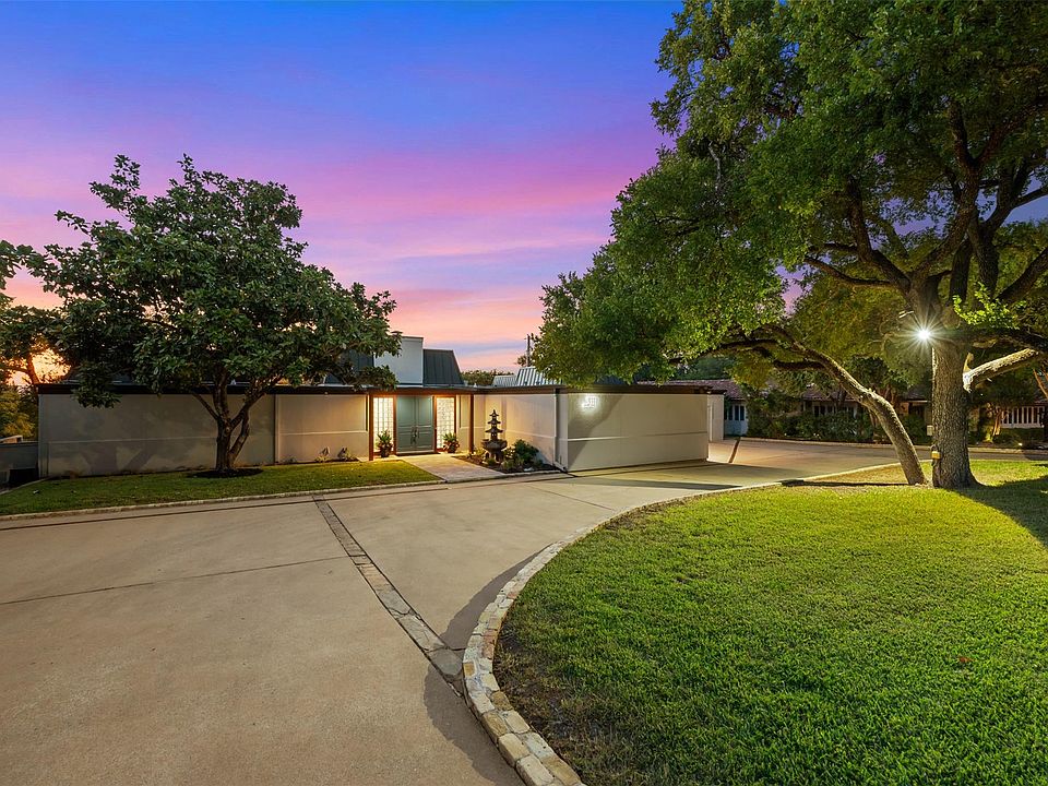 This stunning single-story home in Old Lakeway has been taken down to the studs and meticulously remodeled with luxurious finishes and timeless design. Set on a beautiful .37 acre lot with tall oaks, the home offers multiple expansive outdoor living areas and a sparkling swimming pool, creating a private oasis perfect for both relaxation and entertaining. Inside, a spacious open floor plan features high ceilings, with travertine and hardwood floors flowing throughout. The gourmet kitchen is a chef’s dream—completely remodeled with Thermador appliances, including double ovens, refrigerator, microwave drawer and dishwasher adorned by granite countertops, and custom cabinetry. Walls of glass flood the home with natural light and offer serene views of the pool and lush gardens. All windows have been replaced, electrical panels on home and casita, AC systems, pool pump and cleaner and much more. The main house includes two generous bedrooms with remodeled ensuite baths, both granting access to outdoor living with wonderful privacy, a large dedicated office or study has handsome library wall and access to pool area, a glass surround dining room, and an oversized family room with fireplace—ideal for modern living. Step outside to the resort-style outdoor living area, featuring a fireplace and a tongue-and-groove wood ceiling treatment cover multiple living spaces perfect for year-round enjoyment. Just beyond, a private casita offers an additional full living space complete with brick flooring, a cozy fireplace, dishwasher drawer, refrigerator, wine fridge, and a spacious bedroom with lovely full bath—ideal for guests, extended family, or a home studio. Surrounded by mature trees, vibrant flora, and rich landscaping, when the leaves fall there is a magical Lake view waiting for you. This home offers rare privacy and elegance in one of Lakeway’s most sought-after neighborhoods. You will fee as though you are on vacation when you come home.
