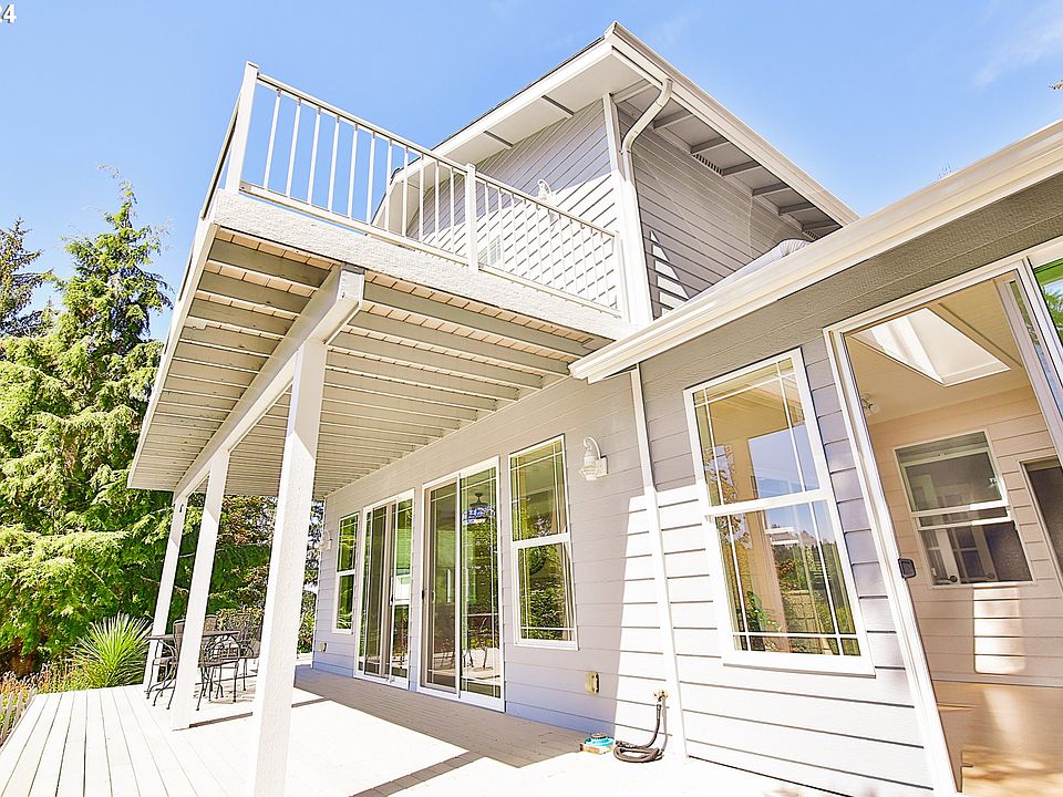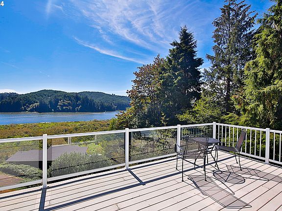 Unique Porte Cochere house perched high above Ten Mile lake built to take advantage of the lots huge lake views & Southern Sun Exposure. Professionally landscaped w/palm trees, flowers, shrubs, extensive parking, Rhino Decking, Wood Composite Siding & Double pane windows. This perfect sanctuary has Plenty of room to gather, unwind & make memories that will last longer than the forever lake views. Some Complementary features include Master suite on the main, Bonus Studio, Granite countertops, SS appliances, inlaid lighting, custom solid wood cabinetry, with a porte cochere the vehicle can be parked for passengers to depart or unload while being protected from the elements! The living room has a wall of windows w/panoramic views of the Lake & City of Lakeside. The Light filled Media room is the perfect family fun room wired for surround sound w/lots of windows & a slider to the Flex Room offering ingress/egress to the multiple outdoor entertainment areas. Enjoy Peace of Mind living in a Gated Community that is private & secluded yet so conveniently close to town. This home boasts many thought out details sure to please the most discerning Buyer. The matching 280sf outbuilding has custom built storage lockers & it many different functions such as an art studio, wood shop or gardening shed. It offers the perfect storage space away from the home for all of your miscellaneous treasures. Council Hill community is built on the shores of Ten Mile Lake located on the Southern Oregon Coast. The area has its own eco system offering Mild year around weather. Perfect for Boating, Lake/Ocean/River Fishing, Legal ATV riding & Off Roading, Dunes, Beach Combing, Hiking, Golfing, miles of Bike trails & more. Locals enjoy their quirky-quaint little town w/constant ongoing events on the Lake, the Dunes & the Coast. This home shouts lets throw the very best holiday party ever yet still manages to whisper peace & privacy every time you walk thru the door. This one is Move in Ready!