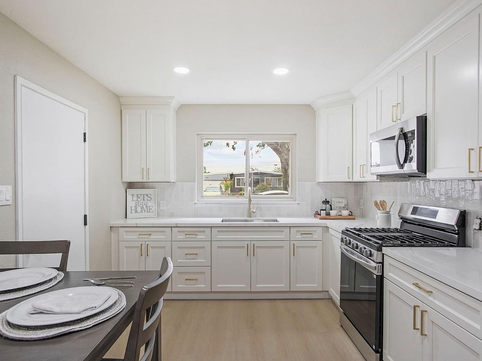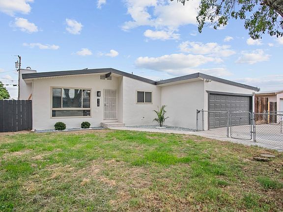 Welcome to this beautifully remodeled single-story home in the heart of Manteca! Featuring 3 bedrooms, 1 bathroom, and 984 sq. ft. of living space, this property has been thoughtfully updated inside and out. The bright living room showcases a cozy stone fireplace. The upgraded Kitchen offers new cabinetry, quartz countertops, and custom tile backsplash. While the remodeled bath offers a new vanity with a Custom tile shower and brushed gold fixtures. New HVAC system installed. New VPL flooring throughout the home to go with the freshly painted interior and exterior. Energy efficiency is built in with a seller-owned solar system, helping keep utility costs low. Outdoors, enjoy your private in-ground pool, poolside patio, and RV accessperfect for entertaining or everyday relaxation. The property also includes a 2-car attached garage plus additional off-street parking with alley access. Located in well established Central Manteca neighborhood with easy access to hwy 99. And the Great Manteca school district!