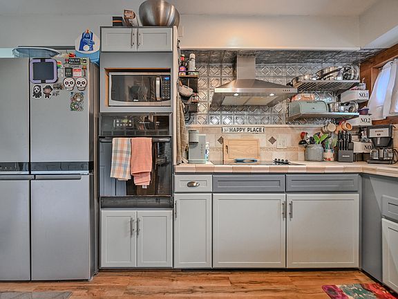 This charming ranch-style home offers 1,248 sqft of single-level living with 3 spacious bedrooms and 1 full bath. The living room boasts vaulted ceilings and flows seamlessly into the kitchen for an open, airy feel. French doors lead to a private outdoor patio complete with a gazebo, perfect for entertaining or relaxing. The fenced-in backyard provides both privacy and convenience. A one-car attached garage adds to the home's functionality. Cooktop, built-in wall oven, dishwasher, and gazebo all stay with the property.