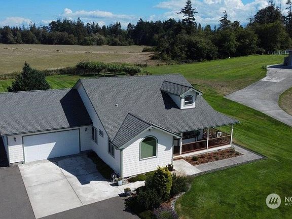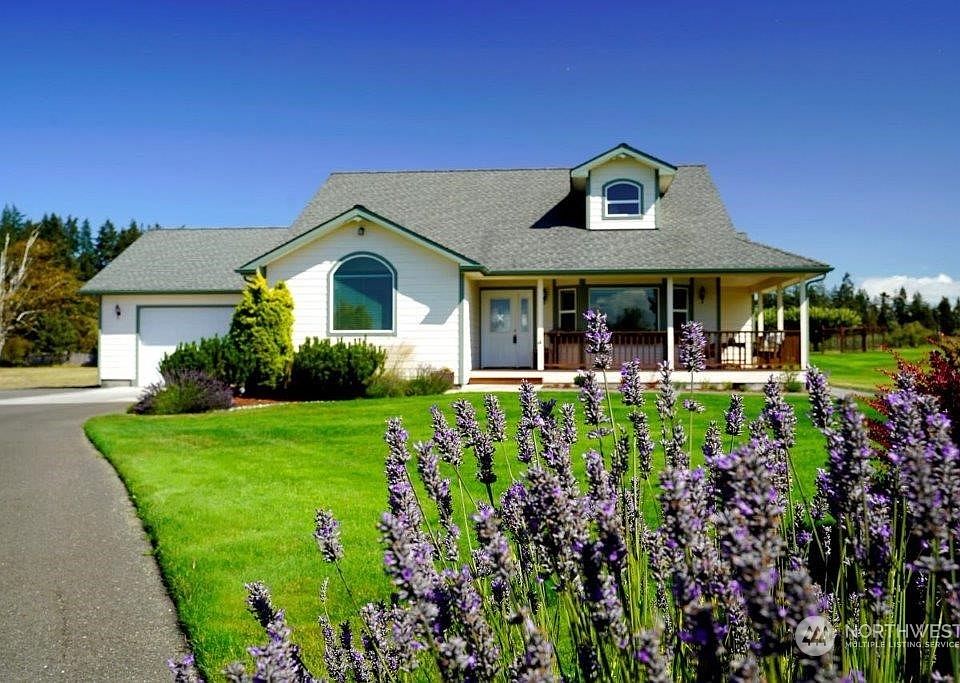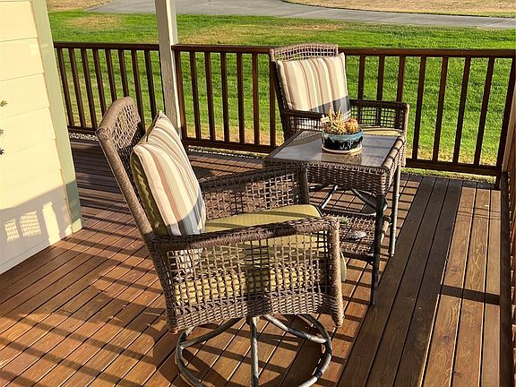This lovely 3-bedroom home sits on 1.03 acre. 1732 well-appointed sq. ft. A large covered front porch and window boxes to enjoy your morning coffee & a deck off the back of the home to enjoy the well manicured grounds and fenced Orchard. An inviting entry with hardwood flooring. The formal living area faces the front of the home & has an electric fireplace. 2 additional bd. Rms. And a private primary with ensuite & double vanity. The kitchen, dining and family room are open, an island kitchen, breakfast bar & skylights, 2nd electric fireplace, double ovens and walk in pantry. The laundry room Also features a deep sink. The oversized garage is great for storage and all of your toys. Cline irrigation.