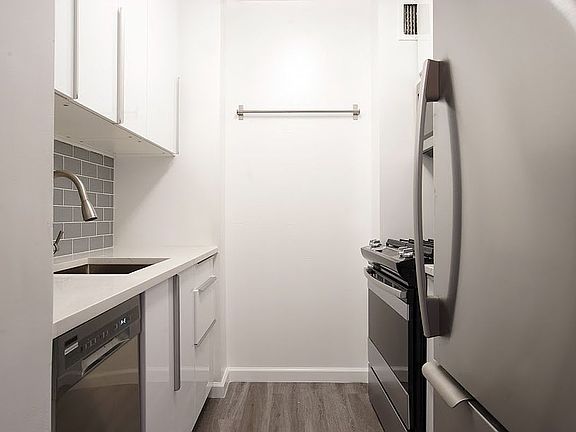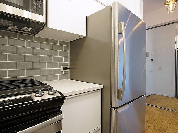 Step into this south facing sun filled newly renovated junior 1 Bedroom and enjoy the luxury of a private balcony, mint galley kitchen, hard wood floors, marble bathroom, and ample closet space.