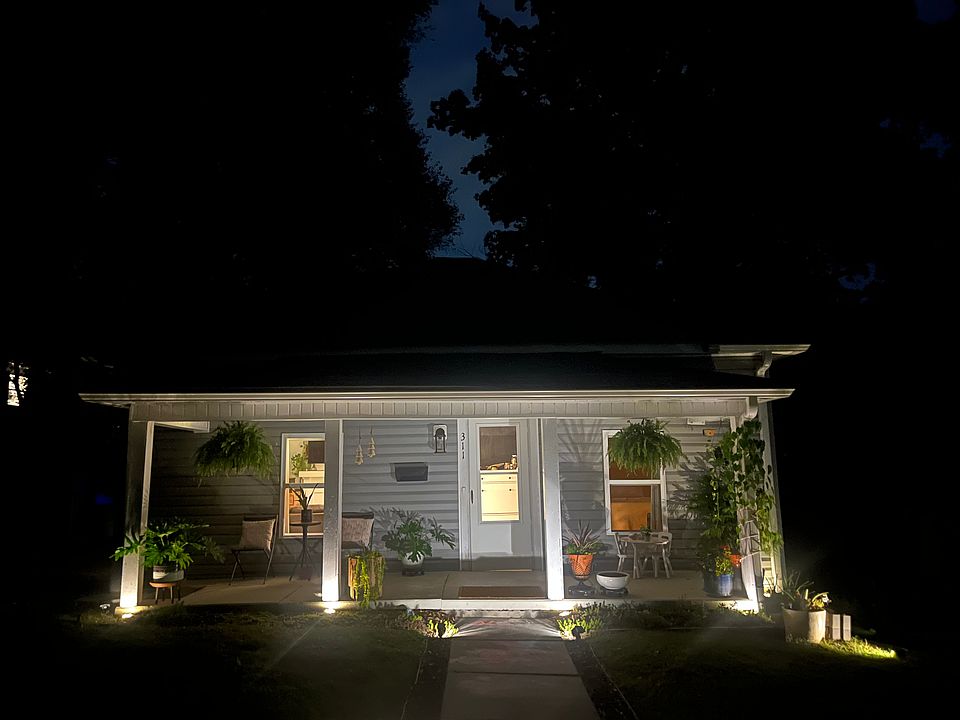 Cozy 2 bedroom and 1 bath located just off North Main Street in Mount Airy, NC. Very close proximity to downtown. Experience Mayberry's parades and holiday festivities up close! Home was updated in 2021 with new HVAC, water heater, windows, vinyl siding, drywall throughout, lvp flooring, light fixtures, kitchen appliances, and bath vanity. New owners added fresh paint and shelving throughout, living room ceiling fan and tv mount over mantle, as well as new butcher clock countertops featuring a farmhouse style sink with disposal. Kitchen pantry is currently under remodel from closet style to new open shelving similar to what's seen over sink. (*Will be completed before move-in/property to be professionally cleaned) 9 foot ceilings in the front rooms and great natural light in the afternoons make this home standout! Chalk walls in foyer, kitchen and back rooms allow tenant to put their own personal touch on the home. Layout also includes a den/office that has served as a children's room. Yard has been pleasantly landscaped with plants and solar lights abound featuring a raised garden bed and a floating deck in the backyard perfect for bird watching or get togethers!