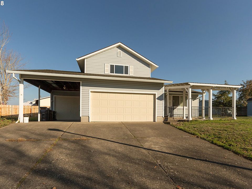 Fabulous home on a Cul-d-sac, extra large lot, great floor plan! Master on the main, and two large rooms upstairs that share a Jack n Jill style bathroom. 2 car garage, plus another single car/motorcycle garage and a covered car port. Covered front patio to relax and enjoy the sunsets! Large yard to entertain, garden, let the kids and the dogs run! Super nice "Tuff Shed" in the back yard.