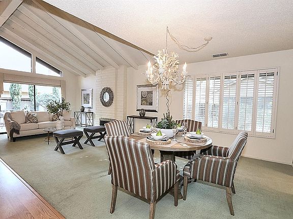 Popular 1-story plan in East Ranch with two spacious bedrooms plus a study. This staged home has a bright, open kitchen, vaulted ceiling in living room, plantation shutters, gas furnace, water heater and 3 patios. The master suite has a walk in closet and dual vanities- Attached 2 car garage and indoor laundry. All homes in East Ranch are detached and the HOA amenities include pool, spa, tennis courts, Clubhouse.