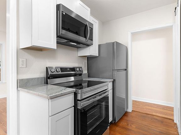 Looking for a home in the highly desirable Navy Point community? Look no further, this delightful cottage is move-in ready! From the moment you arrive, you’ll appreciate the covered carport and welcoming front entry. Inside, you’ll be greeted by a bright living room featuring a high tray ceiling, ceiling fan, and natural light. The open layout flows from front to back, and the home offers wood-look flooring and hardwood, NO CARPET! The dining area is spacious enough for your favorite dining table, and the adjoining sunroom is the perfect spot to enjoy morning coffee, read, or take in the sunshine. Off the dining room is an additional bedroom with a window unit, suitable for a guest suite, hobby room, or home office, and it has its own door for entry. The laundry/utility area is conveniently located off this space and includes a wash sink. Back in the central area, you’ll find a galley-style kitchen equipped with new stainless-steel appliances, a smooth-top electric range, a farmhouse-style sink, granite countertops, and a pantry with a sliding barn door for added character. Down the hallway, the primary suite offers a private bathroom with a linen closet, tile flooring, and a walk-in tiled shower. The second bedroom is nicely sized, and there’s also a full hallway bathroom featuring tile floors, a single vanity, and a tub/shower combo. Through the rear French doors, you’ll find a backyard perfect for grilling, relaxing, or gathering with friends. This home is full of charm and ready for its next owner to move right in. Navy Point is a community like no other, with scenic walking trails, a playground, a boat ramp, and easy access to Pensacola favorites such as the National Naval Aviation Museum, U.S. Navy Blue Angels practice flights, Pensacola Lighthouse, Fort Barrancas, and historic downtown Pensacola.