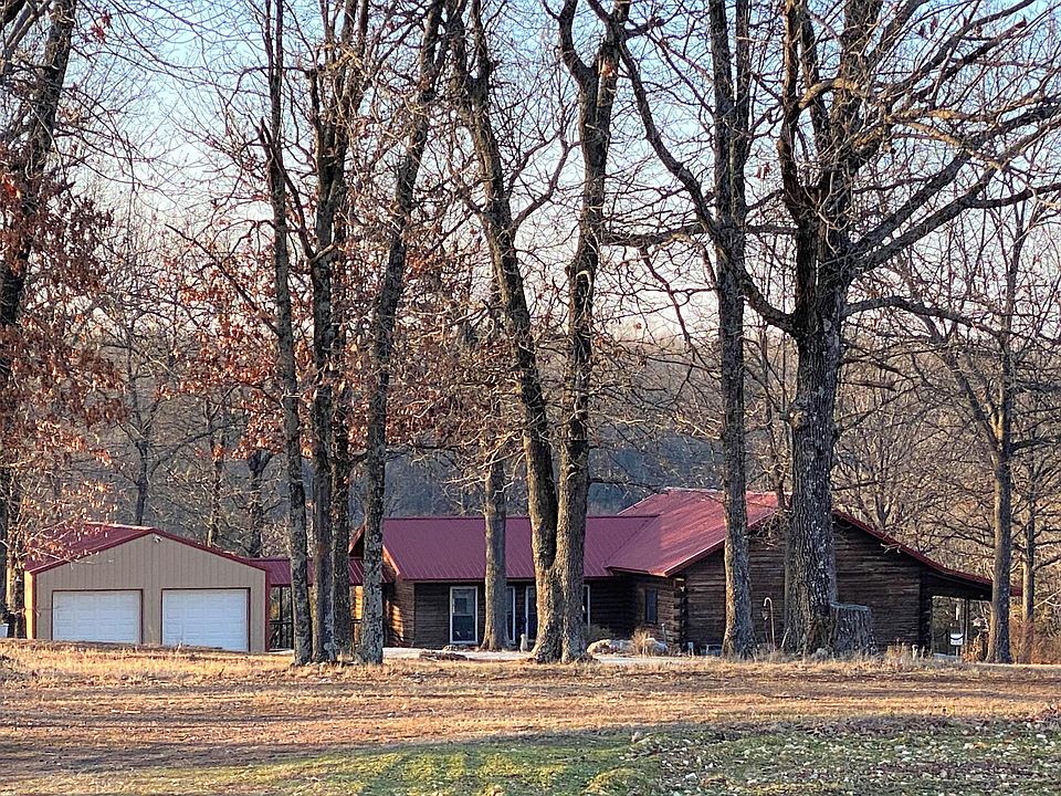 NESTLED IN THE TIMBER, just off of a chip and seal road, there is a Secluded County Log Home sitting on 110 acres m/l of prime farm/cattle land. Lets start outside: Barn ''A'' was built in 2007 is 4440 sq ft with lean to and drive through with over size doors for trailer parking or hay storage or horse stalls. Barn ''B'' was built in 2007 and is 1440 sq ft perfect for storing machines/tractors etc. (check out pictures). Lets talk about the land. Property has 2 wells, It's completely fenced with 5 barb fencing in great shape. There is cross fencing for rotational grazing. It has a small amount of timber (owner has been clearing). There is 2 springs that have been housed. They run year round. This is one stocked pond. There is a storage building with lean to and a run in shed. Big Bonus: there is a canning building that has running water, electric etc. Would be perfect for she shed/man cave/etc. The Log Home is sure to NOT disappoint you! A Picture Perfect setting and the view is panoramic. The covered front porch is so inviting and large. There is a covered breeze way between the garage and house. Step into a beautiful home with pine walls, big windows, large master bed and bath, great room floor plan. This home host 2 bed rooms now but with one or two small walls could easily be a 3 bedroom ''there is plenty of space''. Property has a Hardy Heat system but also is central heat and air. This property burst with owner pride including the land, buildings and the home. HERE IS A GREAT OPPORTUNITY TO GET THE WHOLE PACKAGE IS ONE PURCHASE! Move in and farm! Be sure to check out all the pictures