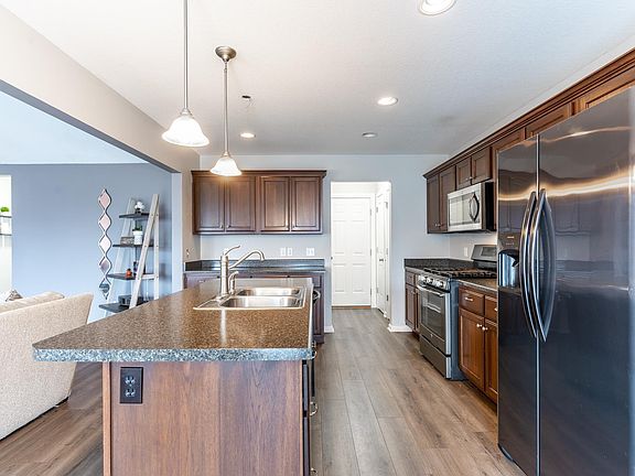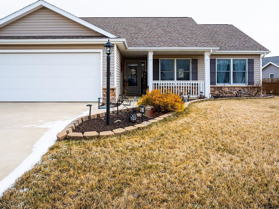 Nicely maintained Granite Ridge home in the delightful Hamilton Meadows subdivision where the walking paths wrap around the neighborhood and ponds. This home is welcoming from the minute you pull into the driveway with beautiful landscaping and a front porch that leads into the open-concept great room with cathedral ceilings. The kitchen has new light fixtures, that complement the hardwood cabinets, and stainless appliances. Also in the Kitchen is a spacious island that allows for casual conversation and a dining nook. Just off the dining nook is a patio door that brings an abundance of natural light before leading to the private backyard complete with a 6' privacy fence new in 2022. This home has many new upgrades throughout including engineered hardwood flooring. The master en suite includes a large closet and tiled bath with lots of room on an expanded counter. An attached 2-car garage and a storage shed for lawn equipment. With a convenient location near schools, hospitals, family entertainment, and I-69.