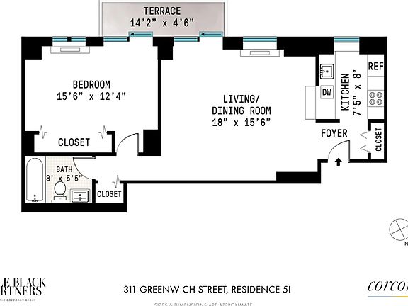 Welcome to Residence 5I at 311 Greenwich Street in Tribeca. Located on a quiet, tree-lined block off Washington Market Park, this bright and comfortable one-bedroom home faces South and West, offering great natural light throughout the day.