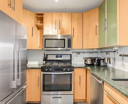 Generously sized one-bedroom homeLandscaped roof deckModern stand-in showerStainless steel appliancesSpacious walk-in closetJuliet balconySunny western views