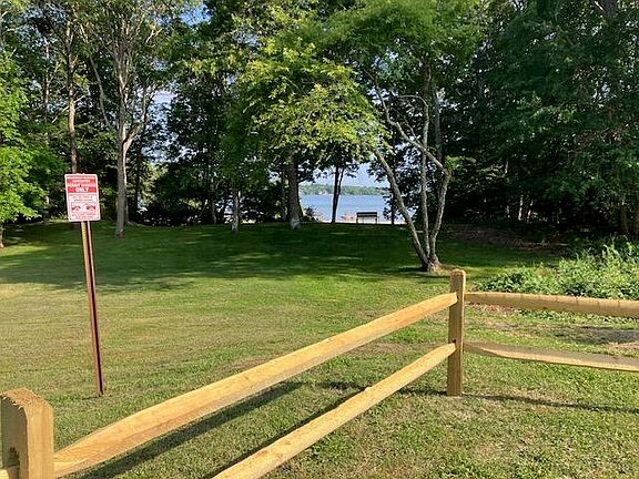 Superb condition 4 bedroom, 2 bath gambrel cape is super close to association beach, dock, and playground and even larger beach up the road. Improvements done in 2019. Spacious sunny living room is open to the redone kitchen and dining area which opens to the sunny family room which opens to both a large brick floored porch and garage, Primary bedroom with walk-in closet and remodeled full bath is on first floor with 3 bedrooms upstairs. Full dry basement, patio, newer windows, central A/C, fenced yard, shed and so much more. Home has leased solar panels.