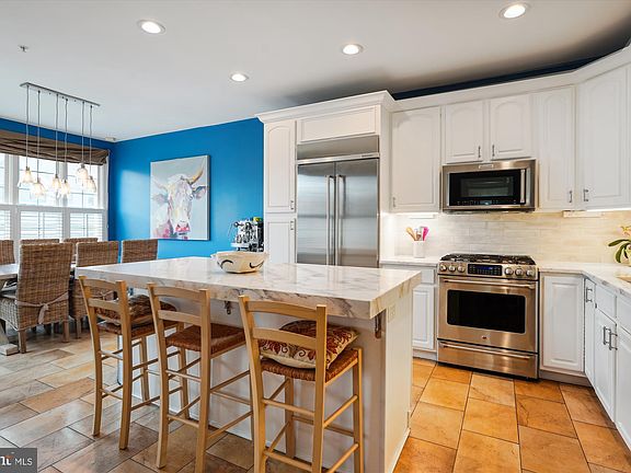Phenomenal four-level townhome in the heart of Kentlands Downtown! One of Kentlands' largest townhome models, the spacious, open floor plan offers special features and beautiful updates in every room. The entry foyer leads to a light-filled living room with gleaming hardwood floors that flow seamlessly into the generous dining room, accented by crown molding and decorator lighting. The updated kitchen is a showstopper, boasting quartz countertops, stainless steel appliances, beautiful white cabinetry, and a custom tile backsplash. The kitchen opens to a sunny breakfast area and an inviting family room with a gas-burning fireplace. A pretty powder room completes the main level. Upstairs, the luxury primary suite offers two walk-in closets and a fully renovated en-suite bath with a double-sink vanity, glass-enclosed shower, and a soaking tub. A second bedroom and a convenient laundry room complete this level. The fourth floor features an expansive, versatile loft area along with two additional bedrooms, both roomy and bright, and another full bath. The walk-out lower level includes a large recreation room with updated flooring and custom built-ins, a third full bath, a big bonus room, ample space for storage, and access to a charming Georgetown-style patio and to the two-car garage. With its exceptional layout, expansive living areas, and prime location with Kentlands' countless dining, shopping, and entertainment options right outside your front door, this home truly has it all!
