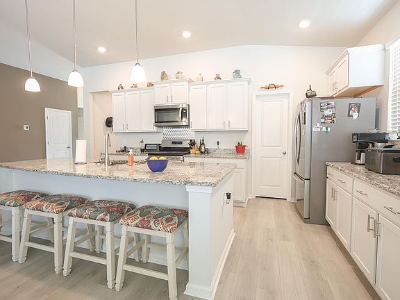 - Features: Breakfast Bar, Kitchen Island, Pantry, Stainless Steel Appliances, Solid Surface Counters