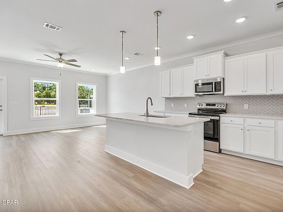 NO RENTAL RESTRICTIONS!!! Our stunning pool is NOW OPEN! The prefect place to SOAK UP THAT Florida SUN! Seagate at Clara is a new townhome community nestled in the vibrant city of Panama City Beach, FL. This two-story unit features board and batten exterior and covered entries. One car garage provides a great space for storing beach essentials. This Unit has a LARGE FENCED IN PRIVATE YARD. This open concept townhome boasts a stylish kitchen with white cabinets, tile backsplash, a large island with quartz counter tops - perfect for entertaining. The elegant Owners Suite is designed with comfort in mind showcasing a large walk in closet and double- bowl vanities. Main Bath has tiled shower. All bathrooms have quartz countertops. LVP is located throughout the home. The community pool features a cabana, lounging, seating and grilling stations. This community has a dedicated dog park. Seagate at Clara is in a prime location, approximately 1.4 miles to the sandy beaches and just minutes from Pier Park.