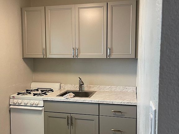 Completely renovated bright studio apartment. Stainless steel refrigerator, stove/oven, kitchen cabinets, tile floor, toilet, faucets, new closet organizer with drawers, hardwood floors with inlay.