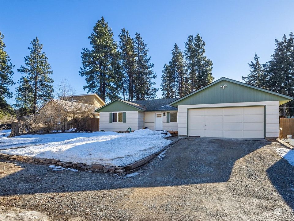 Well-maintained Cle Elum rambler w/ 3 bedrooms & 1.75 baths on a level, oversized lot (9,000 sq/ft) w/ attached 2 car garage and large, fenced backyard play area, garden space, and room for parking. New deck at front of home, ample off-street parking, and an easy walk to nearby parks or the Palouse Cascade Trail. Interior features include wood burning stove, large bonus room, central a/c/ heat pump, recently remodeled bathrooms, and new LVP flooring in bedrooms & baths. Quiet location close to world class flyfishing, outdoor recreation, and nearby Suncadia resort. Solid home w/ many desirable features!