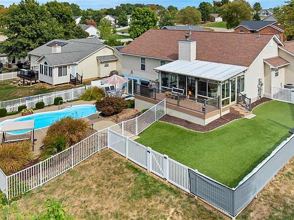 Step outside to your own private retreat: a 34x15 saltwater fiberglass pool complete with inlaid seating, waterfall feature, updated heater and filter system, and included pool accessories. The 4-seasons room (with heat & A/C) opens to a composite deck and a professionally installed 900 sq ft artificial turf yard, all enclosed with high-quality vinyl fencing—perfect for pets and low-maintenance enjoyment.
