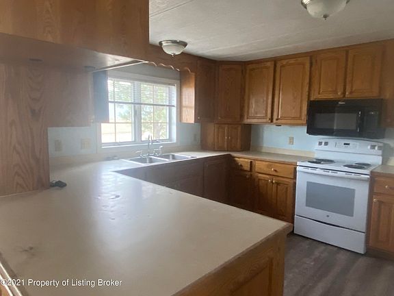 Rare three stall oversized garage attached to large double-wide manufactured home with large mud room with ample space to drop work clothes, boots. Newer flooring in three rooms, newer carpet in bedrooms, great location to work in the Bakken, priced to sell, won't last long. Long workbench in garage. Great property for the working folks needing a garage especially during winter. Covered front deck.