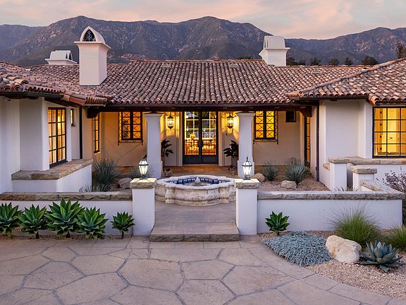 Set behind gates in Montecito's coveted Ennisbrook community, 311 Meadowbrook Drive blends timeless design with effortless California living. With soaring mountain views, vibrant gardens, and a graceful Spanish-style residence, the 1.27-acre property offers space, serenity, and style in spades. Inside, the single-level home features a light-filled mountain view living room, a formal dining area, a spacious kitchen with a breakfast area, a family room, four bedroom suites, and a home office. A 4-car garage, dog run, fruit trees, and raised garden beds complete the offering. A dedicated view easement ensures the mountain views will always be on display! Enjoy access to Ennisbrook's exclusive clubhouse, pool, tennis, pickleball, and more.