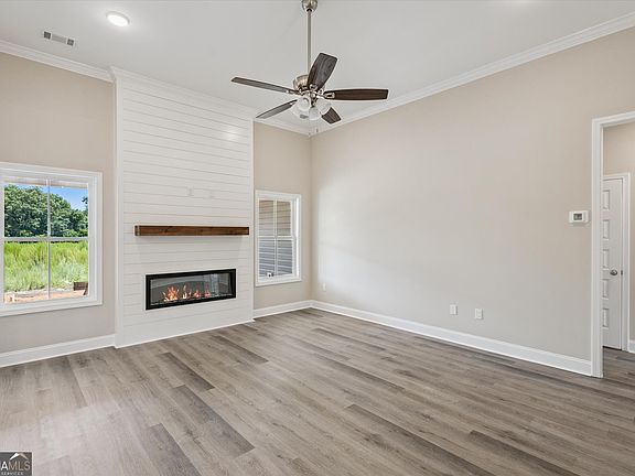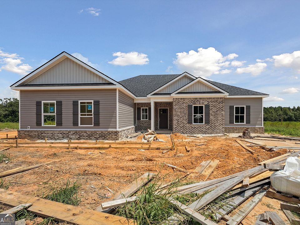 Welcome to 311 Mock Street, a beautiful custom new construction home situated on just over 3 acres right outside of Sylvania, GA-less than 30 minutes from Statesboro and close to local schools and shopping. This home features a classic brick front with vinyl siding and welcomes you inside with 11 ft ceilings, custom trim, and an open, light-filled living room complete with an electric fireplace and mantle. The kitchen is thoughtfully designed with white custom cabinetry, granite countertops, stainless steel appliances, a large island, breakfast bar with additional storage, and a walk-in pantry with a window. Off the kitchen, you'll find a cozy breakfast nook or dining room, perfect for everyday meals or hosting guests. The spacious primary suite overlooks the peaceful acreage and includes a luxurious soaking tub, dual vanities, a stand-alone shower, and a large walk-in closet. On the opposite side of the home, three generously sized guest bedrooms offer walk-in closets and ceiling fans. The guest bathroom features a double vanity. Step outside to a large covered back patio with a ceiling fan and a TV-ready wall-ideal for outdoor entertaining, especially during football season. This home truly checks every box-don't miss your chance to make it yours!