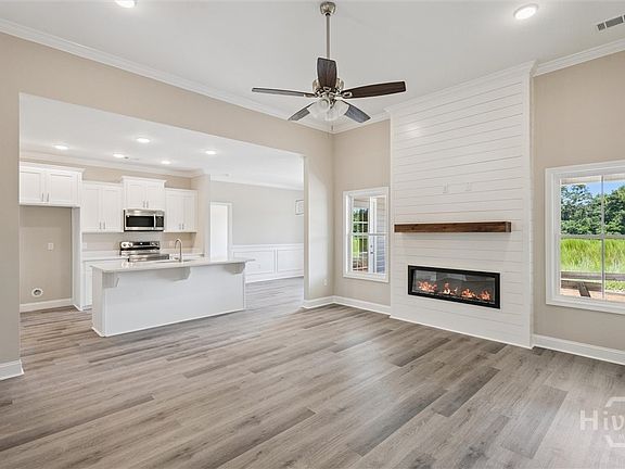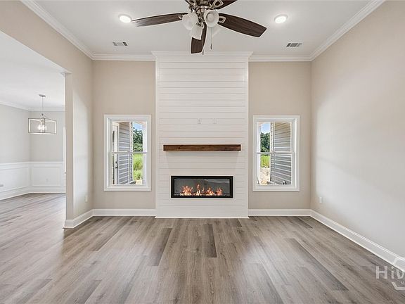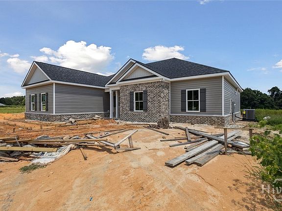 Welcome to 311 Mock Street, a beautiful custom new construction home situated on just over 3 acres right outside of Sylvania, GA—less than 30 minutes from Statesboro and close to local schools and shopping. This home features a classic brick front with vinyl siding and welcomes you inside with 11 ft ceilings, custom trim, and an open, light-filled living room complete with an electric fireplace and mantle. The kitchen is thoughtfully designed with white custom cabinetry, granite countertops, stainless steel appliances, a large island, breakfast bar with additional storage, and a walk-in pantry with a window. Off the kitchen, you’ll find a cozy breakfast nook or dining room, perfect for everyday meals or hosting guests. The spacious primary suite overlooks the peaceful acreage and includes a luxurious soaking tub, dual vanities, a stand-alone shower, and a large walk-in closet. On the opposite side of the home, three generously sized guest bedrooms offer walk-in closets and ceiling fans. The guest bathroom features a double vanity. Step outside to a large covered back patio with a ceiling fan and a TV-ready wall—ideal for outdoor entertaining, especially during football season. This home truly checks every box—don’t miss your chance to make it yours!