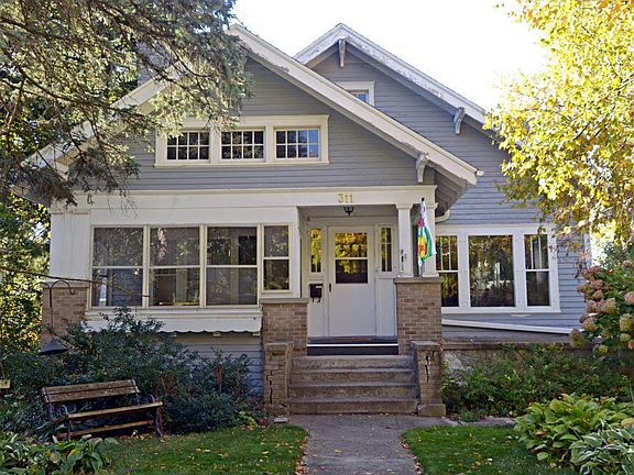 This Craftsman Style home is a true Old World charmer featuring beautiful woodwork, French doors, lead glass windows, and hardwood floors throughout the living room, dining room, and den. The living rooms brick fireplace adds style and warmth to the room. The main floor has original wood work and hardwood floors. There are 2 bedrooms and 1 bath on the main floor and 3 bedrooms, bath and storage room on the second floor. The kitchen is original with built in cupboard cabinetry and restaurant style breakfast booth. There is a patio area off the front of the home as well as an enclosed porch. The yard is manageable with with various perennial plantings. With 5 nice sized bedrooms and 2 bathrooms, this spacious home is full of character and potential -- ready for someone to make it their own!
